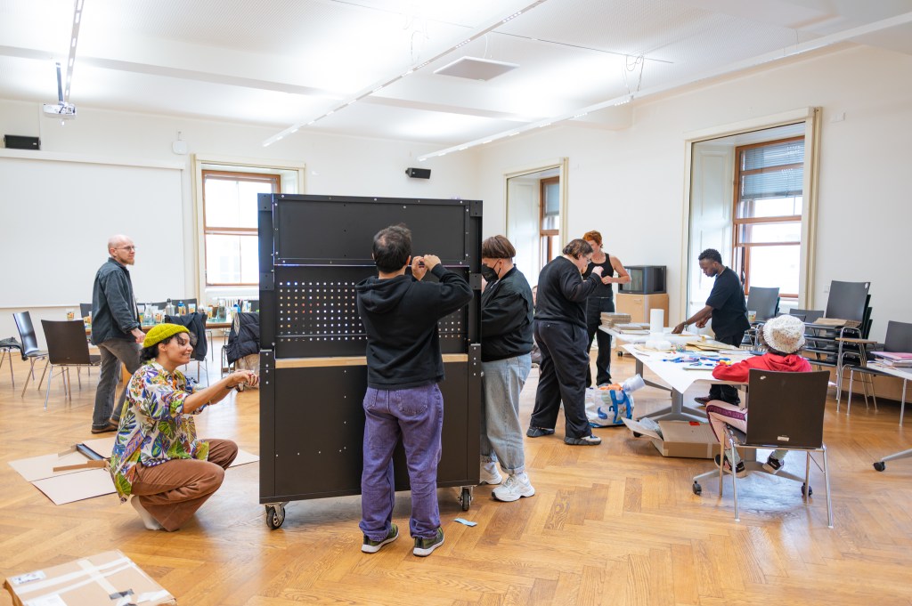 Durch diese Form der Mitgestaltung bleibt das Archiv lebendig und zukunftsfähig – es wächst mit jeder Nutzung weiter. Die Materialität des Archivs nimmt eine Werkstattästhetik auf: Es erinnert an Werkbänke, wie man sie aus alltäglichen Kontexten kennt – aus Schuppen, Garagen, Schulen oder gemeinschaftlichen Räumen. Sie verleiht dem Archiv einerseits eine Robustheit, die für den mobilen